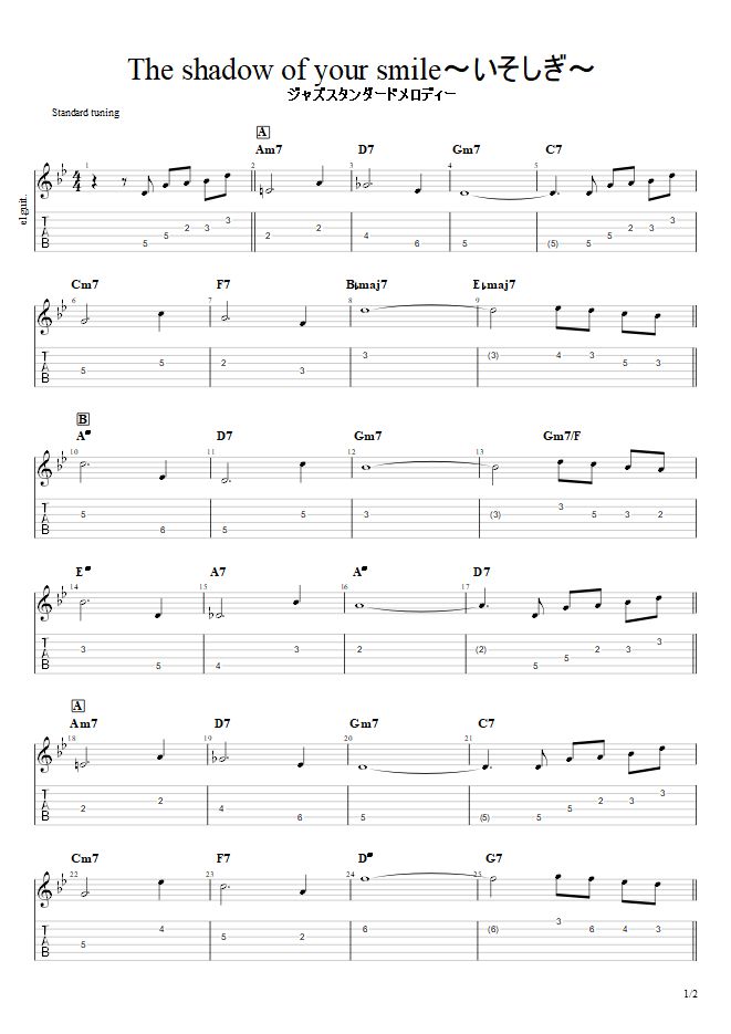 ギターで弾ける!渋い曲【The Shadow of Your Smile/ジャズスタンダード】tab譜にしてみました