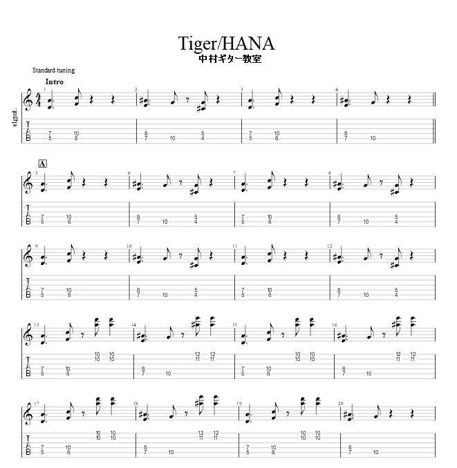 カッコよく弾ける【Tiger/HANA】オリジナルTAB譜