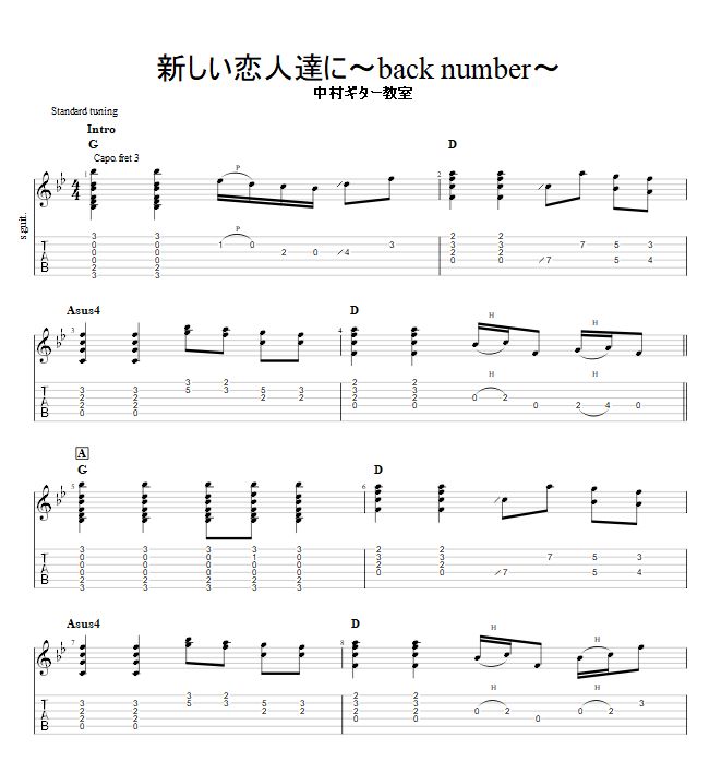 【新しい恋人達に/back number】オリジナルtab譜つくってみました♪