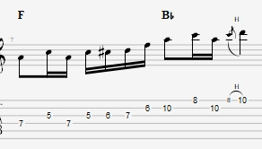 FコードとB♭のコードのコードトーンで着地させてみました。