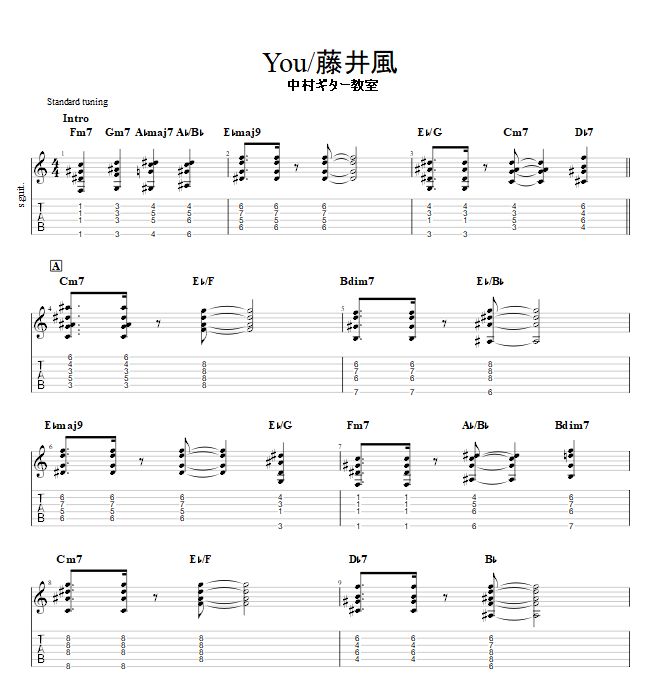 アコースティックギターで弾ける【You/藤井風】耳コピtab譜