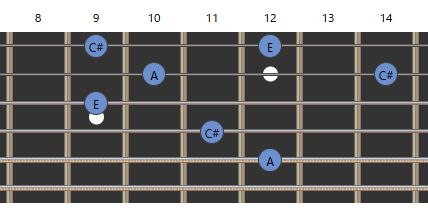 コードトーンの音で伸ばしながらスケールを弾いていくと