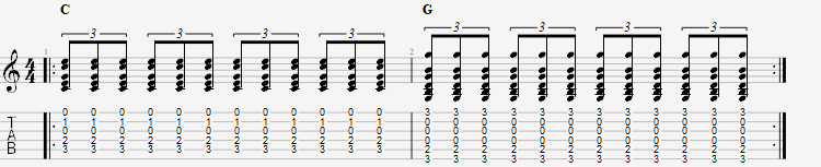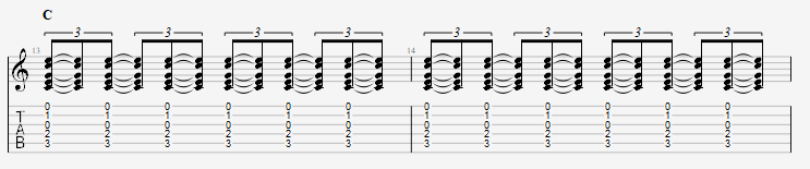 このようにメトロノームに合わせて3連符を基本的なコードで