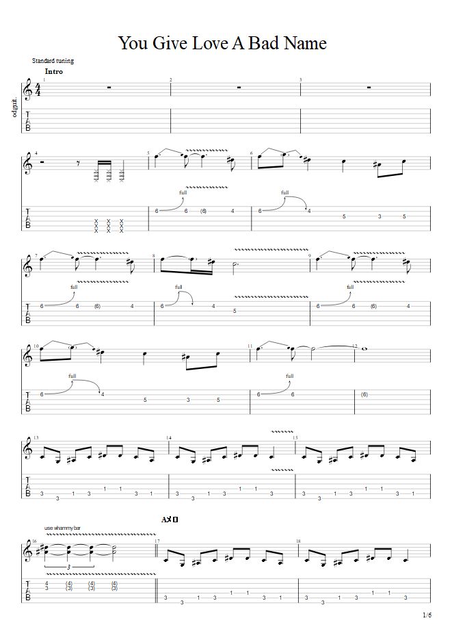【You Give Love A Bad Name/Bon Jovi 】のtab譜のご紹介です!